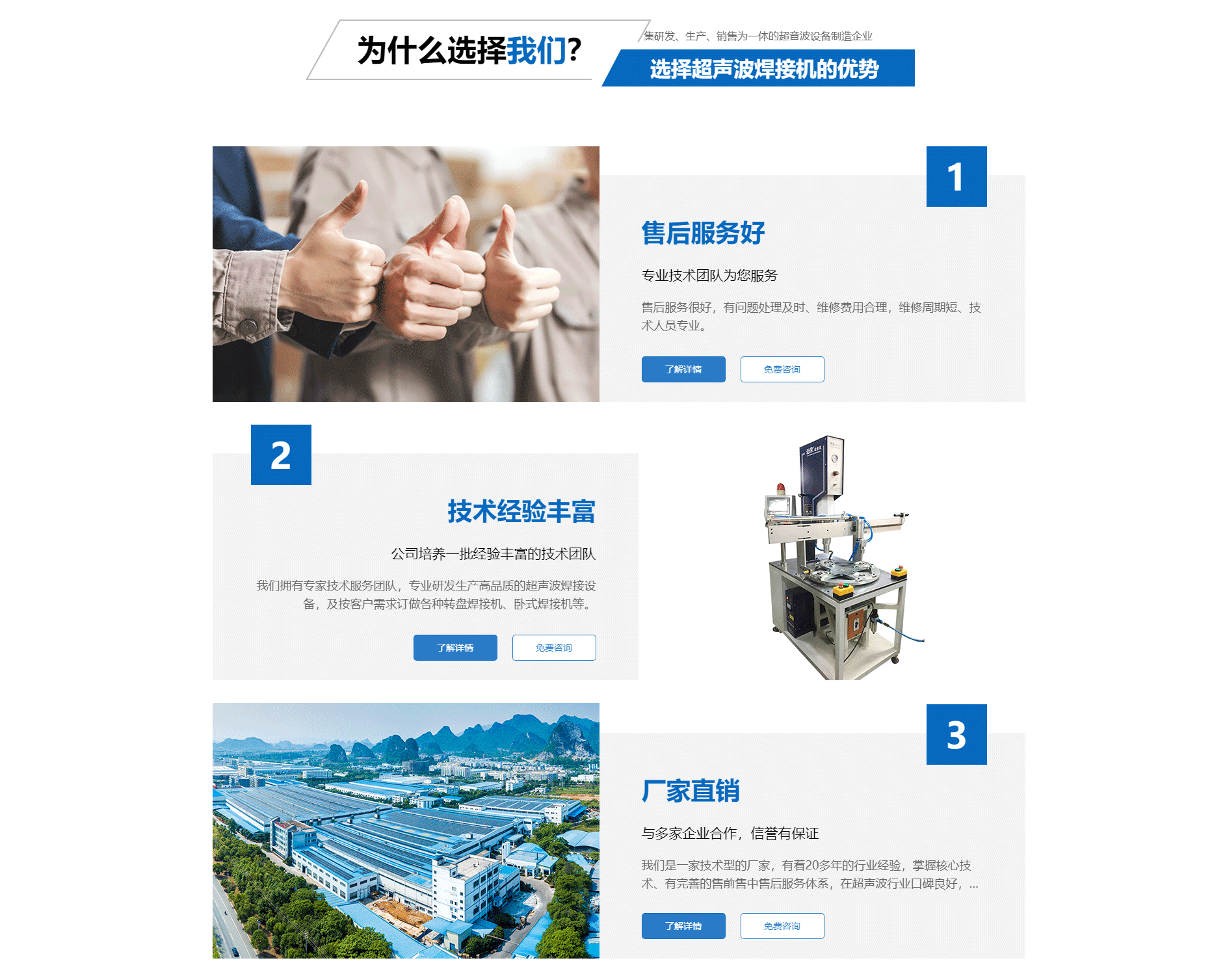 關(guān)于我們公司是一家集研發(fā)、生產(chǎn)、銷(xiāo)售為一體的超音波設(shè)備制造企業(yè),主要產(chǎn)品包括多規(guī)格型號(hào)的超音波塑膠熔接機(jī)、熱板式塑料焊接機(jī)、多工位轉(zhuǎn)盤(pán)焊接機(jī)、各式熱壓機(jī)、旋轉(zhuǎn)式塑膠熔接機(jī)、清洗機(jī)及配套的工裝夾具等。,同時(shí)配合口罩行業(yè)、紙制品行業(yè)、拉鏈行業(yè)、五金壓鑄行業(yè)的超聲波發(fā)生器、換能器、鋼模的供應(yīng)。公司為方便服務(wù)客戶(hù),更好的開(kāi)展售前、售中、售后工作,設(shè)立了泉州,溫州辦事處。 廈門(mén)勁榮機(jī)械設(shè)備有限公司是一家從事超聲波焊接機(jī)、塑料焊接機(jī)、超聲波焊接機(jī)、超音波熔接機(jī)的公司,聯(lián)系人:王經(jīng)理,歡迎咨詢(xún)我們。 超音波熔接機(jī),廈門(mén)超聲波焊接機(jī),塑料焊接機(jī),超聲波焊接機(jī),熱板焊接機(jī),伺服超聲波焊接機(jī),轉(zhuǎn)盤(pán)塑料焊接機(jī), 廈門(mén)超聲波焊接機(jī)_超聲波焊接機(jī)_熱板焊接機(jī)轉(zhuǎn)盤(pán)超聲波焊接機(jī)_伺服超聲波焊接機(jī)-廈門(mén)勁榮機(jī)械設(shè)備有限公司